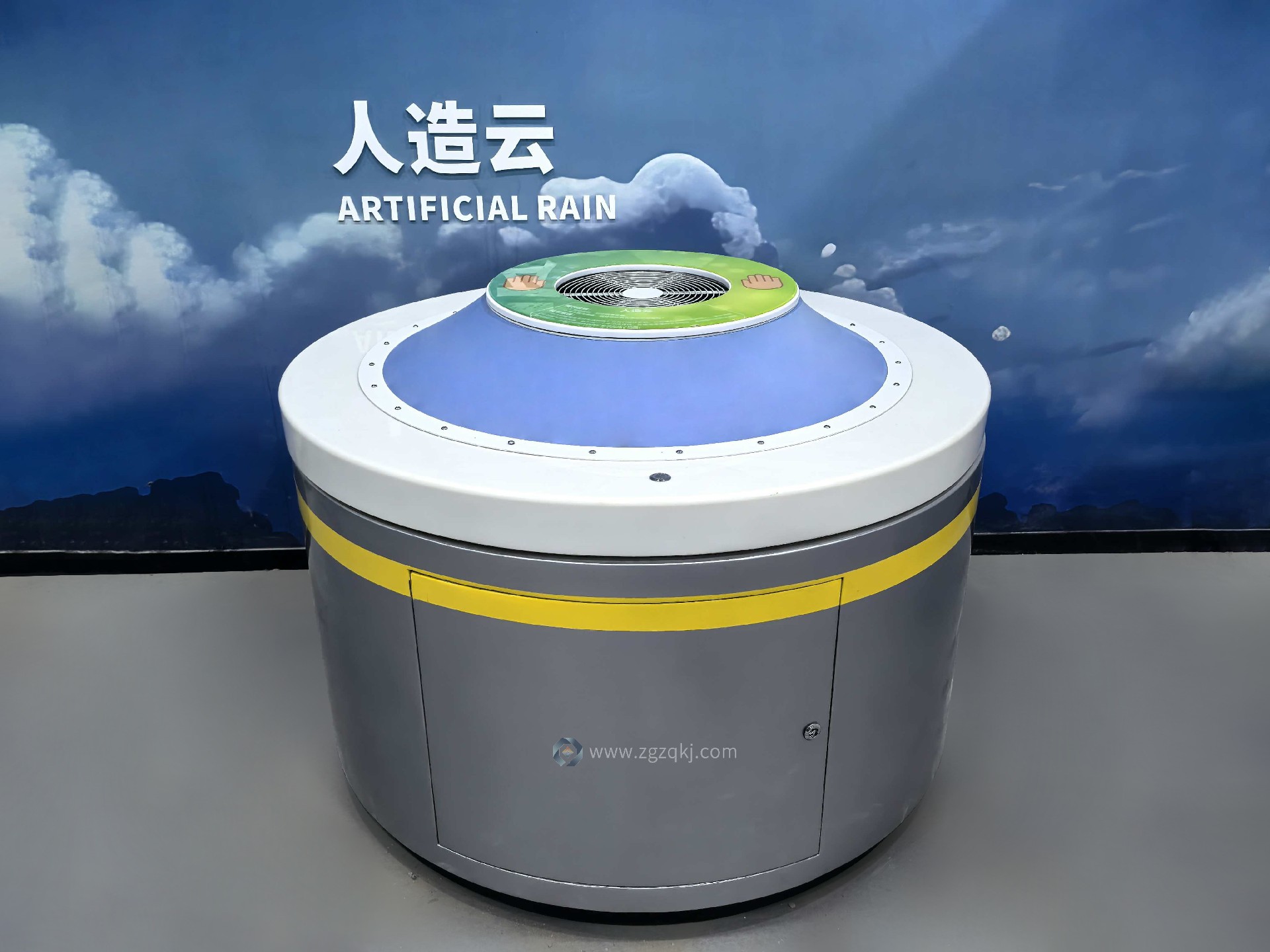 在科學(xué)與技術(shù)博物館的展陳空間里,一方透明展臺正醞釀著“氣象魔法”:按下按鈕,朦朧煙霧如云層般彌漫;雙手輕壓彈性圓盤,巨大的煙環(huán)便騰空而起,緩緩旋轉(zhuǎn)上升——這就是人造云互動裝置,它以“煙環(huán)模擬大氣循環(huán)”的趣味形式,把抽象的氣象原理變成了觀眾指尖可觸的科學(xué)體驗。