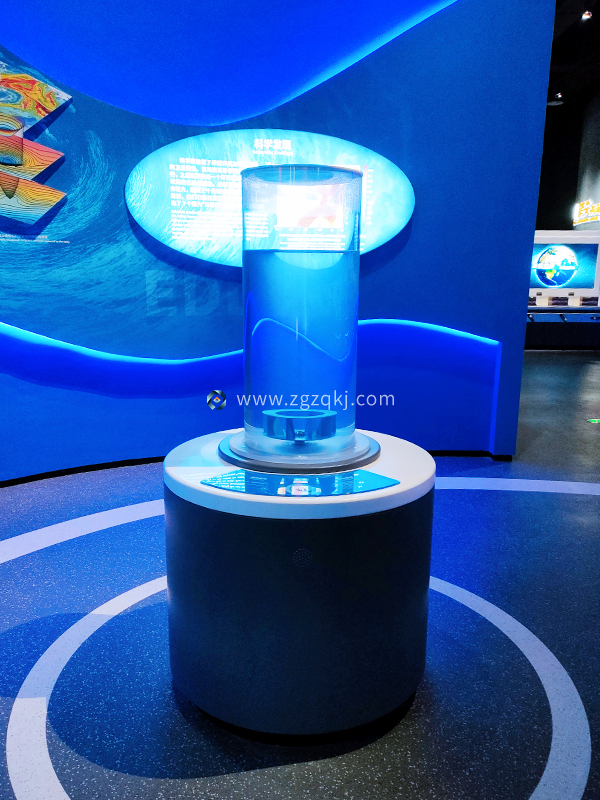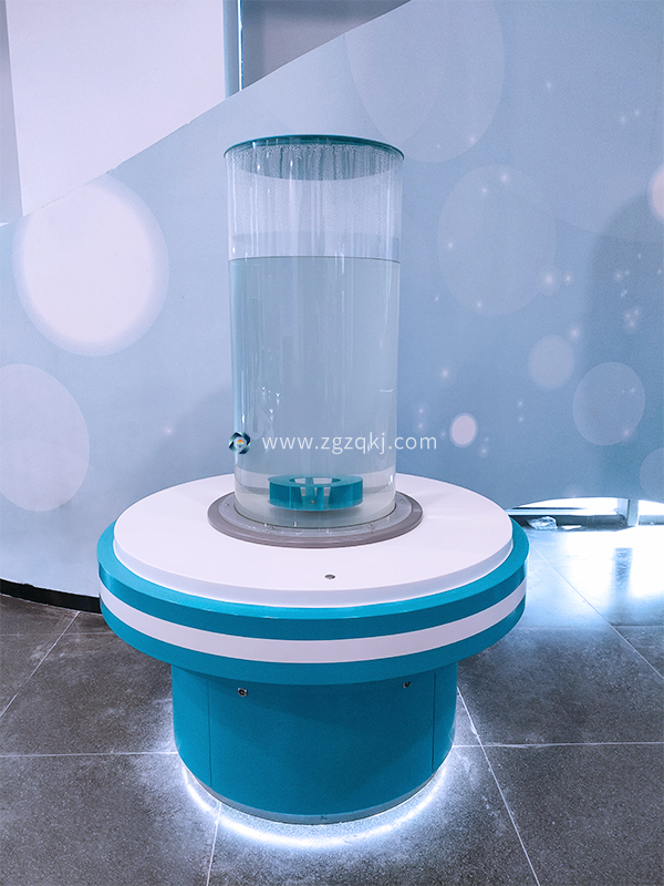 水漩渦裝置通過透明亞克力圓柱體配合精密水流控制系統(tǒng),將抽象的科里奧利力可視化。當觀眾啟動裝置時:
